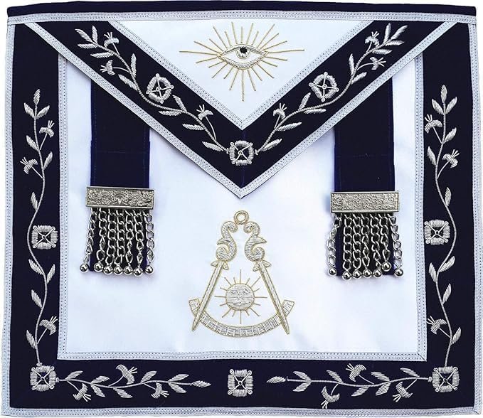Masonic Past Master Embroidered Apron – Blue Lodge Apron – Navy Velvet Silver Embroidery