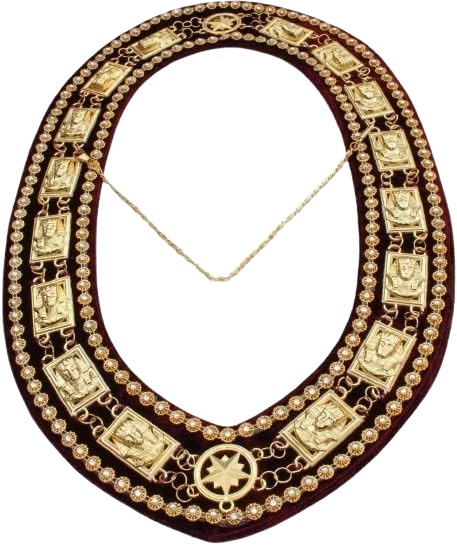 Behold exceptional craftsmanship with this exquisite Masonic Regalia Shriner Chain Collar, featuring an iconic rhinestone Sphinx centerpiece. This collar represents the wisdom, mystery, and majesty central to Shriner tradition. The gleaming gold-plated chain frames a stunning Sphinx pendant adorned with precision-cut rhinestones that sparkle brilliantly under ceremonial light. The rich red velvet backing provides luxurious comfort and elegance, making this collar an unmistakable symbol of rank, dedication, and refined taste.