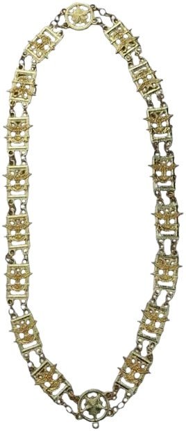 This distinguished chain receives superior gold electroplating treatment utilizing advanced industrial processes that create brilliant, lasting finish capable of withstanding regular ceremonial use while maintaining the lustrous appearance essential for accessories representing the highest degree of Scottish Rite achievement and Supreme Council authority within our ancient philosophical tradition.